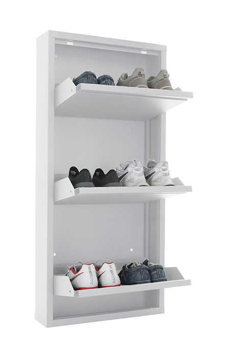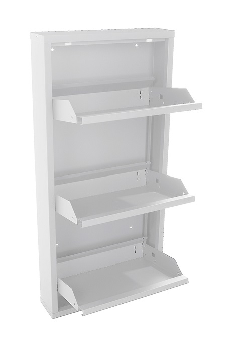 Обувница Практик ОМ-3 белая предназначена для хранения обуви. Обувница состоит из трех отделений, каждое отделение вмещает 2 пары обуви (до 43 размера). Изготовлена из стали, поставляется в собранном виде. Цвет: белая Ral 9003. Тип покрытия: порошковое