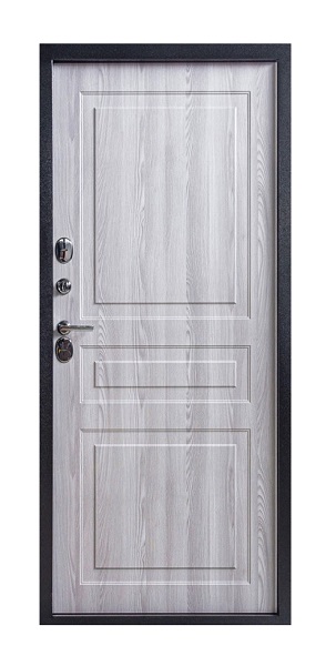 Дверь металлическая Норд серии "Терморазрыв" оптимальное решение для установки в местах, подвергающихся воздействию природных температур. Данная конструкция двери надежно предотвращает промерзание двери при температуре на улице до минус 30 С. Дверь с терморазрывом имеет в районе притвора уникальную 2х камерную конструкцию, состоящую из холодной и теплой зон, которые разграничены между собой двойным слоем уплотнителя, пластиковым элементом в полотне и перфорацией в коробе. Дверь Норд комплектуется двумя сувальдными замками Промет 30.11 и Промет 30.01 четвертого класса взломостойкости, а также алюминиевой дверной ручкой Inspector 93 в цвете хром. Размеры наружные (ВхШхГ) 2104х889х130 мм, Размеры светового проема (ВхШ) 1913х667 мм, Монтажные размеры короба (ВхШ) 2050х880 мм, Глубина (толщина короба, мм) 130, Толщина полотна 87 мм, 4 контура уплотнения (3 шлегель Q-Ion и 1 Е-образный), Сувальдный замок Промет 30.11, Сувальдный замок Промет 30.01, Ночная задвижка, 3 петли на подшипнике, Наполнение двери - пенополистирол высокой плотности. Применение пенополистирола в качестве внутреннего наполнителя, обеспечивает низкую теплопроводность и высокую звуконепроницаемость. Дверь Норд покрыта износостойкой полимерно-порошковой краской. Цвет внешней стороны двери: антик серебро, внутренняя сторона: фрезированный МДФ панель 6 мм, ривьера айс.